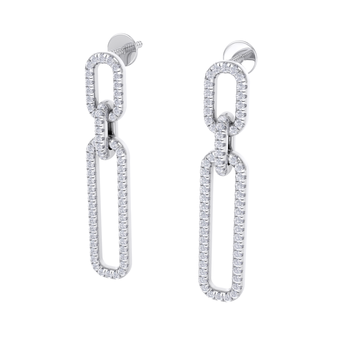 Part of our Chain Link collection, the diamond chain link earrings in gold have a total diamond carat weight of 0.50. Round cut diamonds are encrusted in the surface, giving the earrings a beautiful sparkle. The earrings stay in place with the screw back fastening. Wear with our matching diamond chain link necklace for the full look.